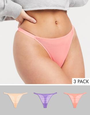 Women Asos 3 Pack Strappy Thong With Eyelash Lace Fashion Wild