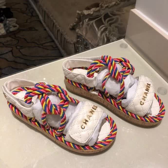Chanel Women S Shoes Woven Rope Velcro Non Slip Sandals Shopee
