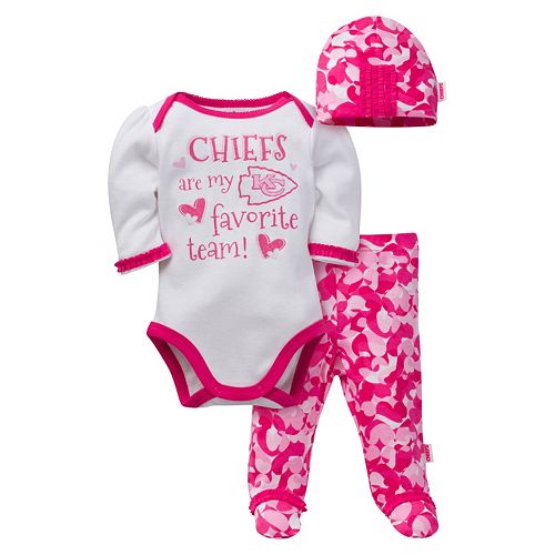 Baby Girl Kansas City Chiefs 3 Piece Bodysuit Pants Cap Set