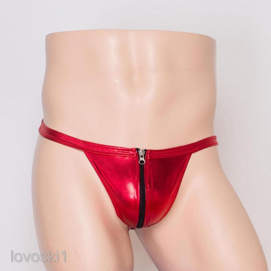 Sexy Men Leather Zipper Open Front Thong Underwear G String T Back
