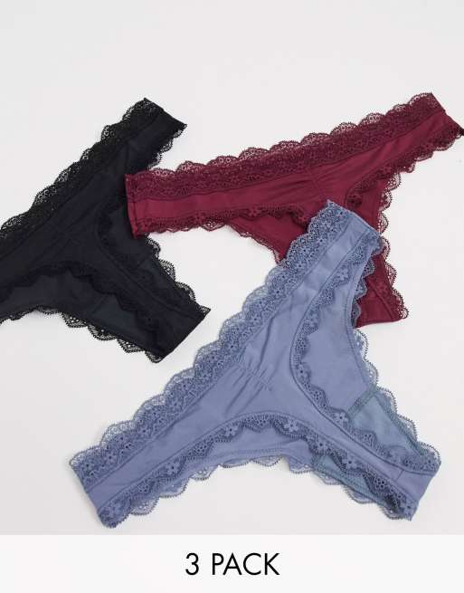 Featuring soft smooth microfiber fabric with scalloped lace trim. Unser spitzentanga ist die koenigin der unterwaesche und ideal unter leggings oder skinny jeans. Thong 3 pack string peachblueblack. 2125 1065 10.
