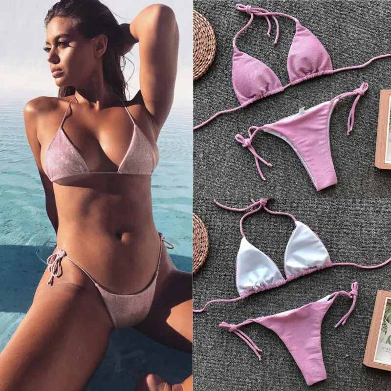 O L Women Fashion Solid Color Straps Bikini Top Sexy High Waist