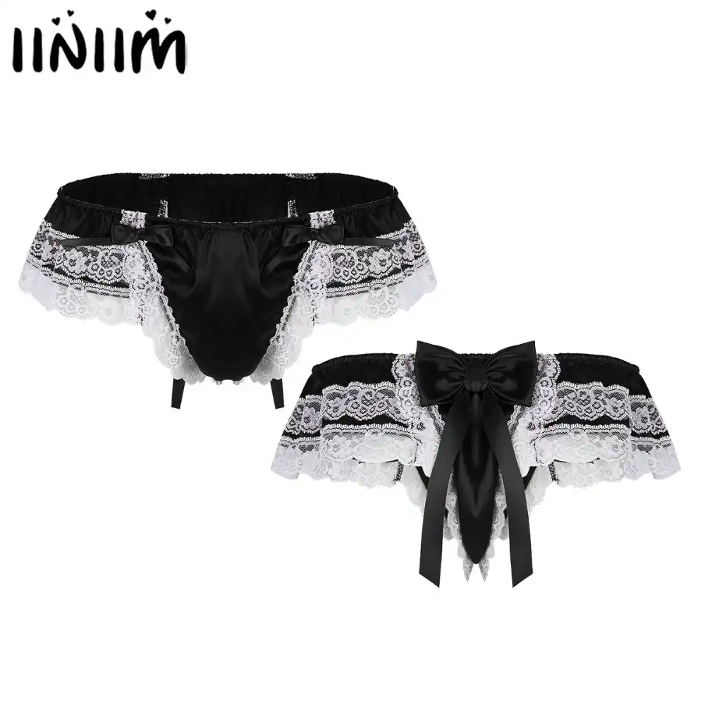 Iiniim Mens Lingerie Sissy Gay Panties Satin Double Layers Floral