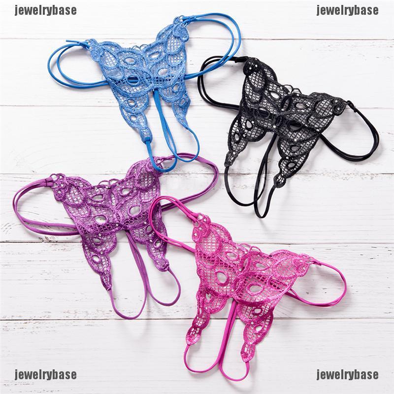 Undiesw Sexy Women Lace Butterfly Ladies Open Crotch Thongs Briefs