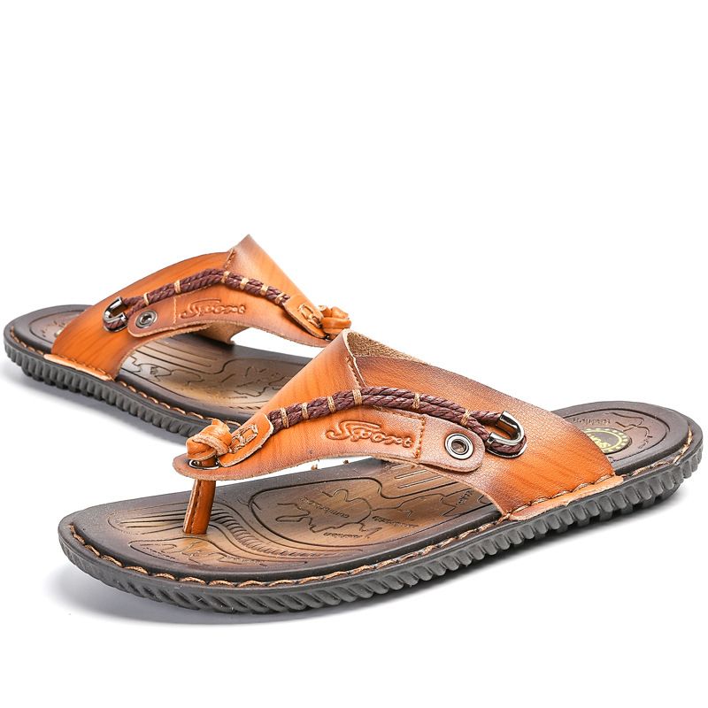 Men Beach Flip Flops Leather Thong Sandals Casual Outdoor Slipper