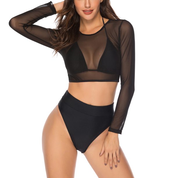Women Swim Suit Bikini Long Sleeve Brazilian Swimsuit Female Mesh