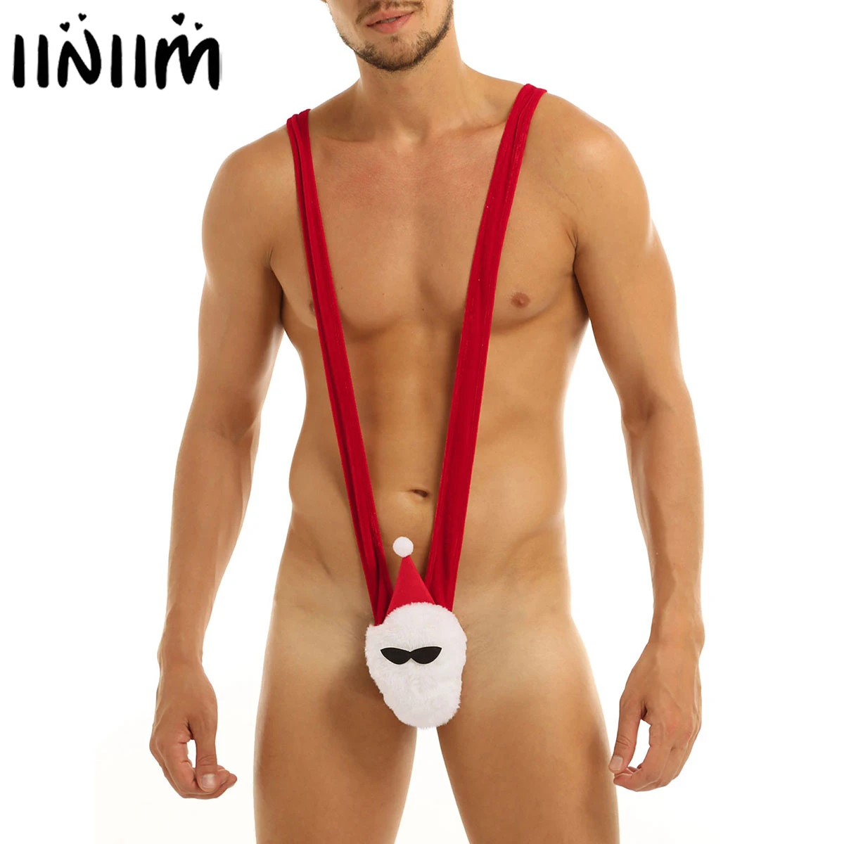 Mens Erotic One Piece Lingerie Velvet Christmas Mankini G String