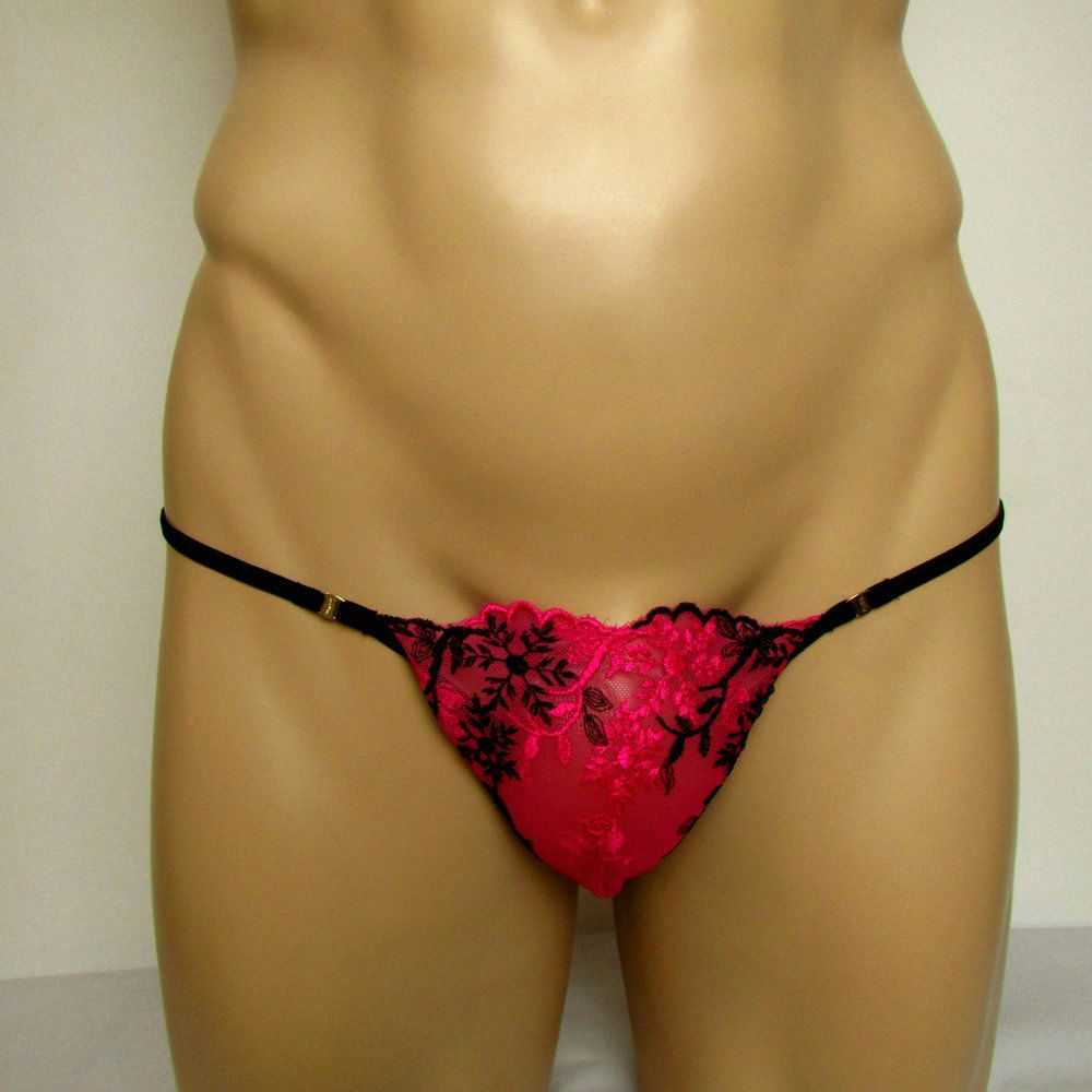 Mens Roses Low Rise Thong Sexy Sheer Lingerie Underwear Pink