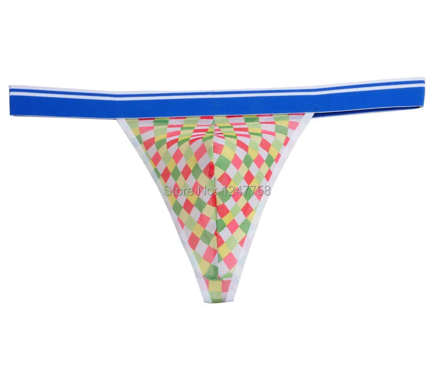 Sexy Men S Thong Mesh Plaid Mini T Back Pants Enlarge Bulge Pouch