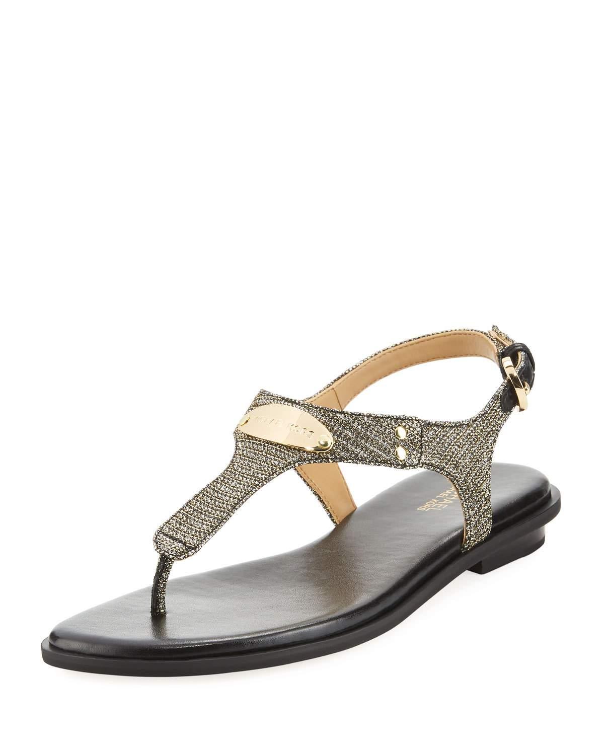 Michael Michael Kors Mk Plate Metallic Thong Sandals In Black