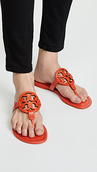 Nib Tory Burch Miller Square Toe Sweet Tangerine Orange Flip Flop