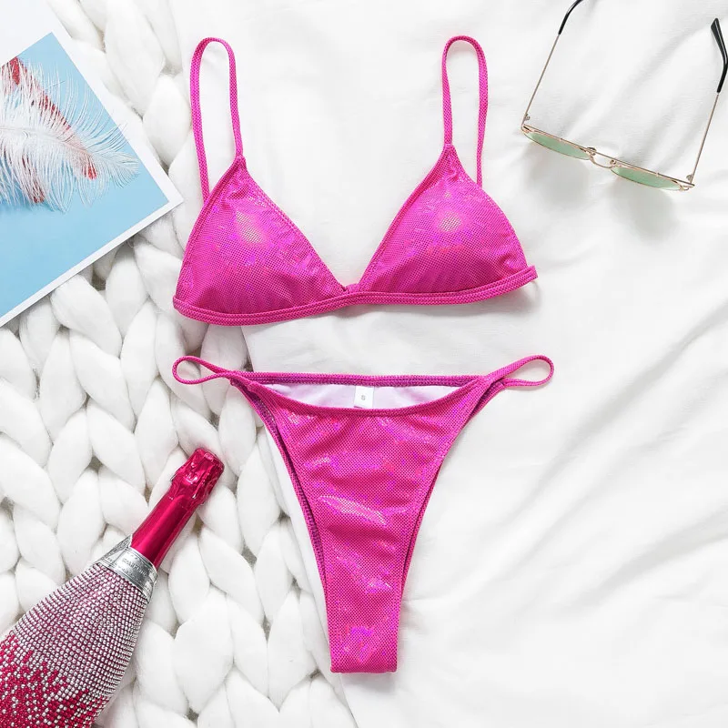 2020 Neon Thong Bikini String Micro Top Triangle Push Up Swimsuit