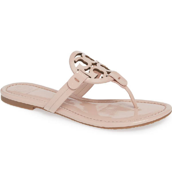Tory Burch Miller Patent Leather Thong Sandals In Sea Shell Pink