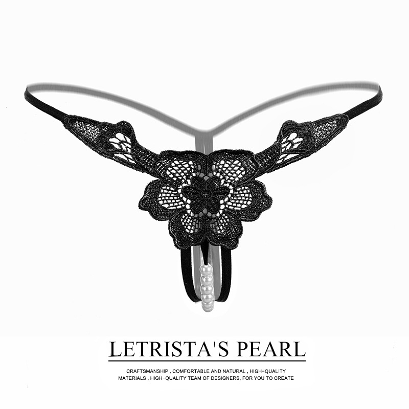 Pearl Thong Crotchless Black Lace Panties Sexy Underwear For Women
