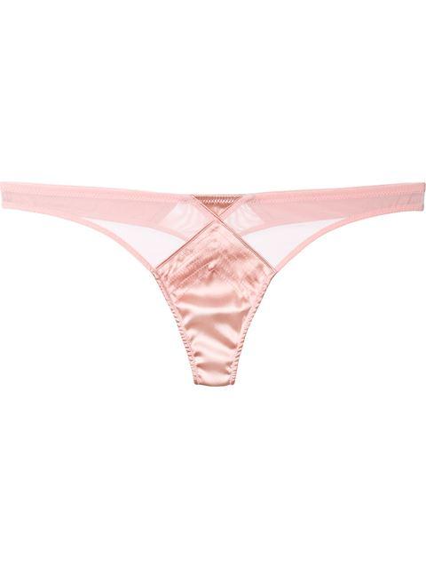 Fleur Du Mal Satin And Mesh Thong In Pink Modesens