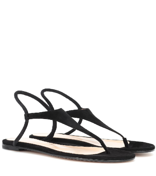 Gianvito Rossi Anya Suede Thong Sandals In Black Modesens