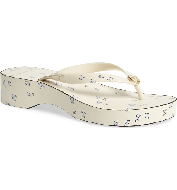 Tory Burch Women S Printed Cut Out Wedge Thong Sandals In Ivory